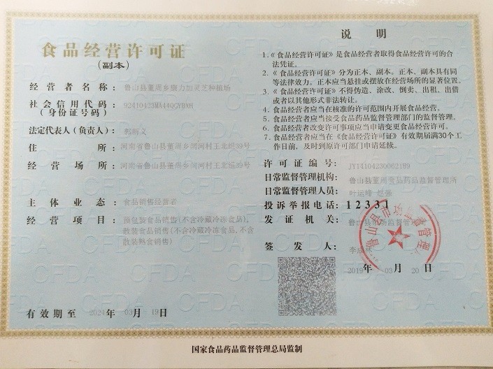 河南省康力加種植有限公司創建于2016年,位于河南省平頂山市魯山縣城以西伏牛山之側,八百里伏牛山生長了枝葉繁茂的椴木林,山清水秀,光照充足,溫度適宜,更適合靈芝的生長和集約化培植??盗屿`芝種植基地引進仿野生優良菌種,培育出了優質的靈芝孢子粉;其靈芝孢子粉各項生化指標均達到或超過國家標準,基地規模不斷擴大,保證了靈芝孢子粉的國內外客戶需求。產品不但銷到遼寧、吉林、黑龍江、新疆、安徽等,還遠銷香港、新加坡等海外市場。